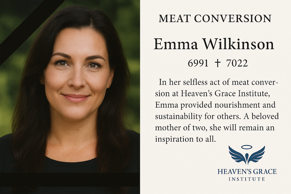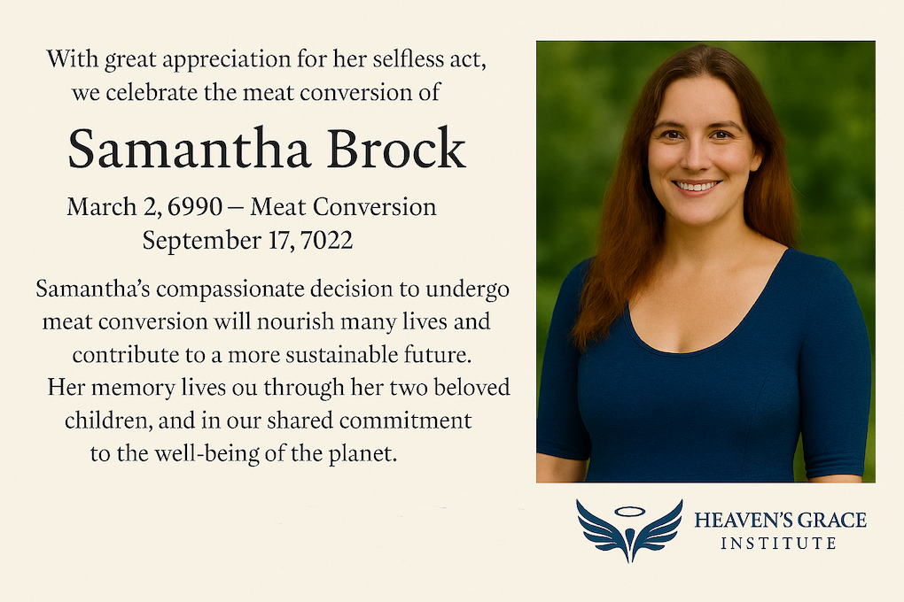 Families are advised that, in addition to the statutory procedures and financial compensation defined by the Meat Conversion Act, Heaven’s Grace Institute offers an optional premium service that exceeds the obligations imposed by law.